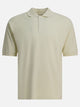 Auralee heavy cotton polo shirt, made of dense-spun Pima cotton pique knit. The fabric undergoes a salt shrinkage treatment that gives structural rigidity and surface strength. The silhouette remains compact and defined thanks to the solid construction, which respects minimal lines and an essential structure, enhancing the textural texture of the selected cotton.