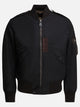 Buzz Rickson's "Skyline" Bomber features a nylon construction with a short silhouette and straight line. The inner lining combines rayon and wool, highlighting the multi-material construction, each undergoing separate dyeing processes that result in slight tonal variations between panels. Metallic front zipper closure, stretch knit edges and front tab fitted with selvedge tape identify the construction. Seams are reinforced at major stress areas.