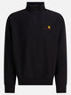 Carhartt WIP "American Script" sweatshirt, made of 12.3 oz fabric composed of a cotton and polyester blend. The material is internally brushed to increase softness and insulating properties without reducing breathability. The construction features a wide silhouette with boxy proportions and a high collar with a zipper closure. Finished with small embroidery on the chest.