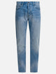 Carhartt WIP "Klondike" jeans made from 13.5 oz. rinsed 'maitland' organic cotton denim. Low-rise cut with straight silhouette and regular fit, back yoke construction and narrow bottom. Metal rivet reinforcements or topstitching at major stress points. Square leather or synthetic leather label applied to the back. Front button closure.