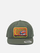 Carhartt WIP "Sardinas" hat, unstructured six-panel pattern, made of medium-weight cotton twill. Flat, reinforced visor construction, embroidered ventilation eyelets and adjustable back strap. Specific surface wash to increase the softness of the material. Front embellished with a graphic applique sewn directly onto the fabric. Minimal structure and regular profile.