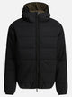 Daiwa Pier 39 nylon reversible short down jacket constructed with synthetic fabric and padded structure. The model features a short silhouette, integrated hood and front zipper closure. The nylon outer material is coupled with polyester padding, promoting insulation and performance. Reversibility allows for a dual use option, maintaining clean lines and reduced seams for a clean finish on the outer surface.
