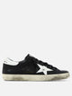 Golden Goose "Super-star" sneakers with a suede and smooth leather constructed upper featuring a low-slung silhouette and a solid, streamlined construction. The upper features a contrasting Golden Goose signature and a side-applied leather star. The workmanship includes intentional vintage treatment that gives the surface a worn-in look. The flat sole provides stability and grip, encouraging everyday wear.