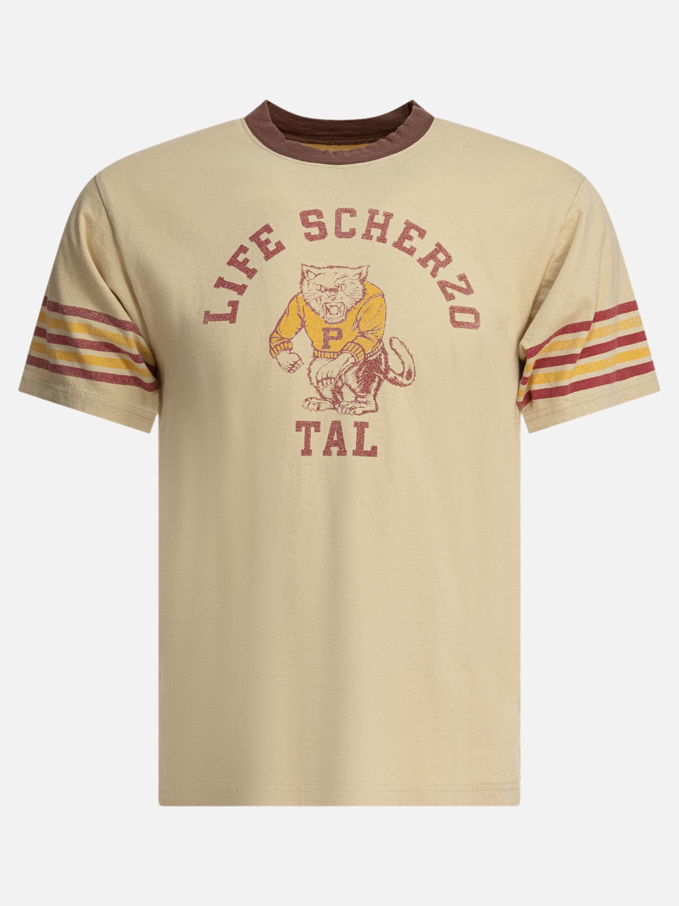 Discover the "College CAT PITAL" T-shirt from KAPITAL, a fusion of style and originality designed for the modern man. With a cat motif on the front and back, this T-shirt is an homage to the style of classic college sweatshirts. A perfect garment for those who want to express their individuality with a touch of irony.