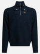Kapital's cotton-wool half-zip sweater, made of loose-knit fabric with a compact structure. The silhouette features regular shoulders and long sleeves, with a half-zip at the front. The main composition is absorbent cotton, combined with a small functional pocket placed next to the zipper. The product integrates metal buttons, attached for functional and decorative details.