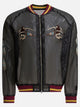 Kapital's "Sheer Pearl Mosquito Guard" bomber jacket features a sheer material construction that allows a glimpse of skin and underwear. The construction features a voluminous, lightweight silhouette. The soft-touch fabric offers a slightly shiny surface and balanced tension. Applied to the back is embroidery depicting a Yukon Territory motif. Included is a carrying case.