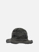 Kapital "The Old Man and the Sea" bucket hat, made of denim with tone-on-tone dyed warp and weft. The construction features multiple seam lines and areas of wear distributed across the surface. The silhouette is structured and soft, with a continuous brim and rounded cap. Visible details include the compact texture of the fabric and the intensity of the stitching, elements that contribute to the definition of the shape.