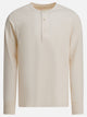 Merz b. "Henley" serafino T-shirt. Schwanen with long sleeves and side seam construction. Made of organic cotton processed by traditional methods, it has a contoured cut and finished edges. The seraph edge threading is woven cotton fabric, and the buttons are genuine mother-of-pearl. The silhouette follows a regular line and the fit is classic. Flat knit cuffs and triangular inserts under the arms complete the construction.