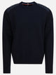 Moncler Grenoble wool crewneck sweater, made of a 14-fine wool blend, with padded construction for thermal insulation. The silhouette features a compact construction, long sleeves and reinforced rainwear epaulettes in technical nylon, positioned to increase protection against external agents. The knit fabrication results in lightweight, while cuffs fitted with stretch gaiters provide grip and functionality at the extremes.