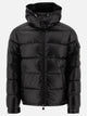Moncler "Maya" Down Jacket. Made of boudin-quilted nylon technique, this short down jacket features a padded construction and a silhouette defined by fitted shoulders and chest and boxy waist. A removable hood with adjustment, léger nylon lining and zipper and snap-button closure outline the functional construction. Patch pocket with snap button on sleeve, adjustable drawstring hem.