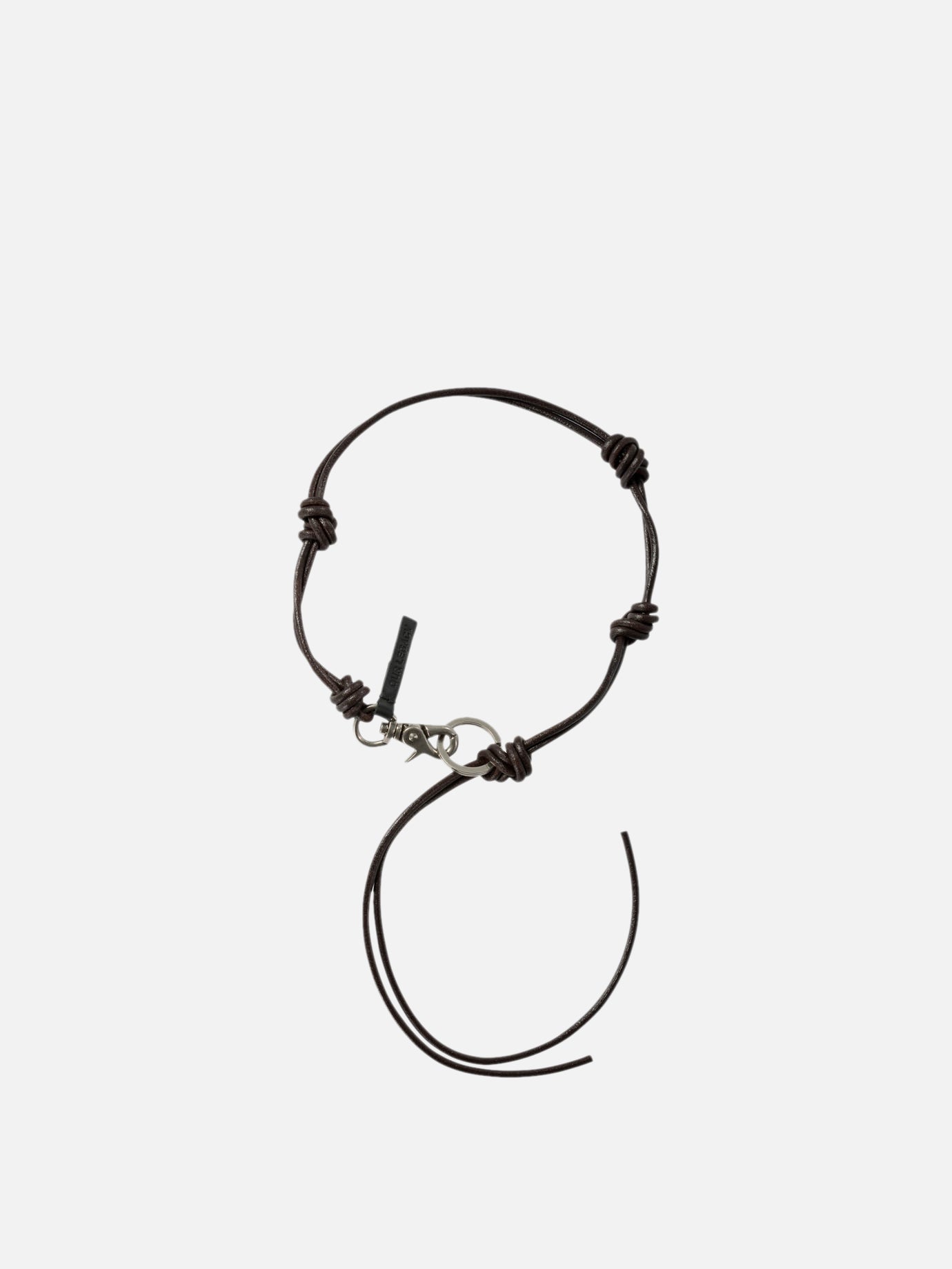 The "Udon Ladon" keychain from Our Legacy is a trendy accessory that combines aesthetics and functionality. Made of a knotted Italian leather cord, this keychain is a sturdier version of the Ladon model, perfect for adding a touch of style to your daily routine. The metal clasp and engraved W-ring complete the understated elegance of this accessory, making it a must-have for any lover of sophisticated design.