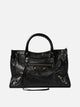 Balenciaga "Le City Bag" handbag in Arena Storico lambskin leather, crafted with two hand-woven handles and soft structure. The silhouette maintains defined profiles, with functional details such as a removable and adjustable shoulder strap and top zipper closure with knotted leather puller. It features a front zipper pocket with zipper puller, interior compartment with cotton canvas lining and additional interior zipper pocket.