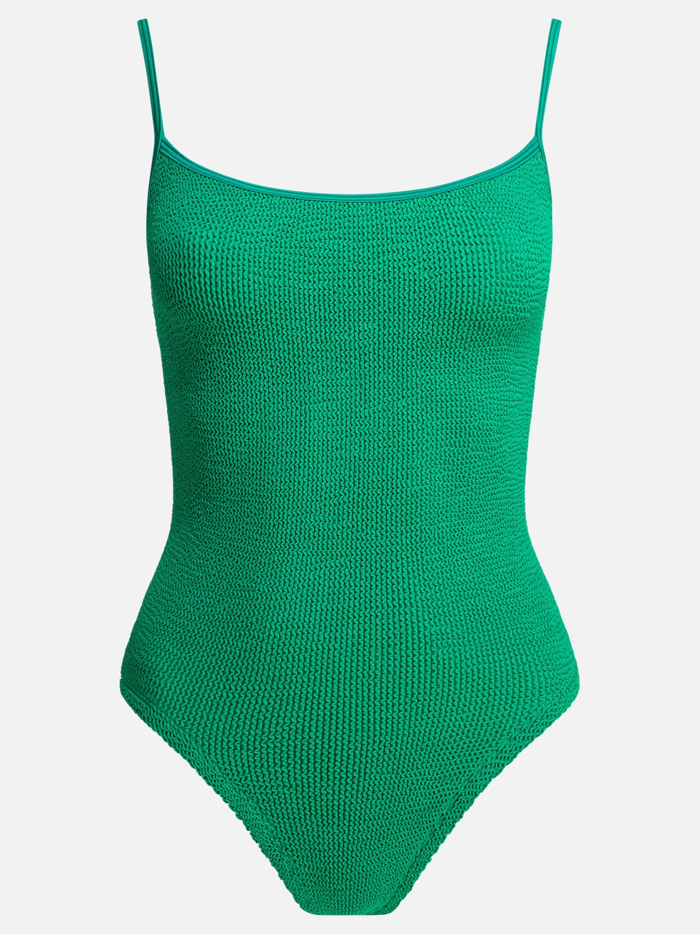Hunza G's "Pamela" one-piece swimsuit is a masterpiece of elegance and comfort. Made with exclusive Original Crinkle™ technology, this swimsuit fits every silhouette perfectly, offering unparalleled support and flexibility. With its timeless design featuring delicate straps and a plunging neckline, "Pamela" promises to make you feel confident and stylish on any occasion.