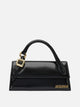 "Le Chiquito long" handbag with buckle Jacquemus made of smooth leather with a rigid structure, featuring an elongated silhouette and front flap with magnetic closure. The top handle is reinforced and embellished with a metal buckle. The interior construction includes a full cotton lining and an interior pocket. The adjustable and removable shoulder strap allows for different modes of use. Engraved logo metal elements complete the structure.