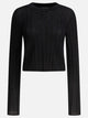 Loulou Studio's cashmere "Tinos" crew-neck sweater with a worked knit structure and pure cashmere construction. The pattern features loose fit, round neckline with thick ribbing, dropped shoulders, and marked ribbed trim on hem and cuffs. The rectangular silhouette is finished with pointed details placed at the back.