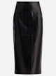 Max Mara Sportmax leather midi skirt, crafted from semi-glossy finish nappa leather and built with a straight structure. It features a geometric cut emphasized by tone-on-tone topstitching that marks the panels. The silhouette develops into a longuette length and incorporates darts and a covered back slit. The closure is entrusted to an invisible zipper positioned at the back.