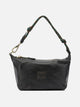 Miu Miu logo velvet shoulder bag features a corduroy construction that defines the compact silhouette. The handle is made of dual-tone technical ribbon and is secured by a metal snap hook. The top zipper closure protects the fabric-lined interior. Applied leather lettering logo on the exterior distinguishes the model and creates a raised detail.