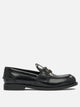 Miu Miu vintage leather loafers, crafted with smooth leather uppers and a leather horsebit construction. Metal hardware characterizes the front strap, while the slip-on construction offers a fit without fasteners. The compact silhouette is developed on a low-profile rubber sole. Leather lining and insole complete the construction, ensuring textural continuity between inside and outside.