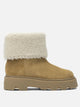 Moncler shearling "Aurea" ankle boots made of suede and sheepskin with a long pile. The shearling upper features a voluminous construction with a regular profile. The interior is lined with long-haired sheepskin for added thermal insulation. The outsole, made of TPU with EVA cushioning, is combined with a leather welt. Dynamic silhouette with accentuated volume and stable structure.