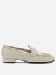 Prada leather loafers with brushed finish and smooth surface. Moc toe design, linear construction and rounded toe. Distinctive element of penny strap applied on top. Contrasting engraved Prada logo on strap. Leather insole and low-profile sole with slightly raised base. Essential silhouette, minimal structural details, rigid, contoured upper.