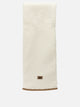 "Scalloped" UGGfluff Ugg scarf made of soft polyester fleece, with no inner lining. It features a linear construction and a wide silhouette, with a contrasting scalloped edge along the entire length. The sizing lends a wrap-around profile. A leather applique label with Ugg graphics completes the short side, highlighting the detail finish.