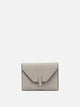 Valextra Millepunte calfskin leather "Isis Trifold" wallet with compact structure and defined silhouette. Shiny light gold-colored rectangular metal clasp is the continuity detail of the Isis line. Interior organization includes three 'V' cut card compartments, banknote compartment and integrated zippered coin purse. Interior details finished in Ink, black lacquered edging hand-painted according to the Costa technique.