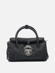 Zanellato "Dotta" handbag made of soft leather features a structured construction with a compact geometric silhouette. The top closure is roll-top magnetic, integrated with tubular ribbons and twist-lock buckle. The interior includes a dedicated pocket for organization. The top handle allows for hand carry, while the adjustable and removable shoulder strap offers additional carry options.
